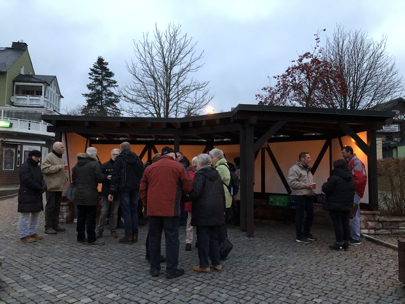 anschließend nach einer Glühweinpause mit Plätzchen vom Bahnhof aus an