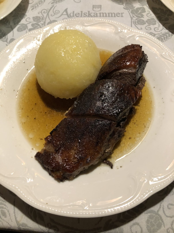 Gansbrust mit Klößen und Sauer-/Rotkraut standen zur Auswahl, wer