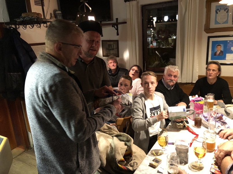 max. 3 Euro beisteuern. Unser Vorstand zog die Lose, sein Helfer