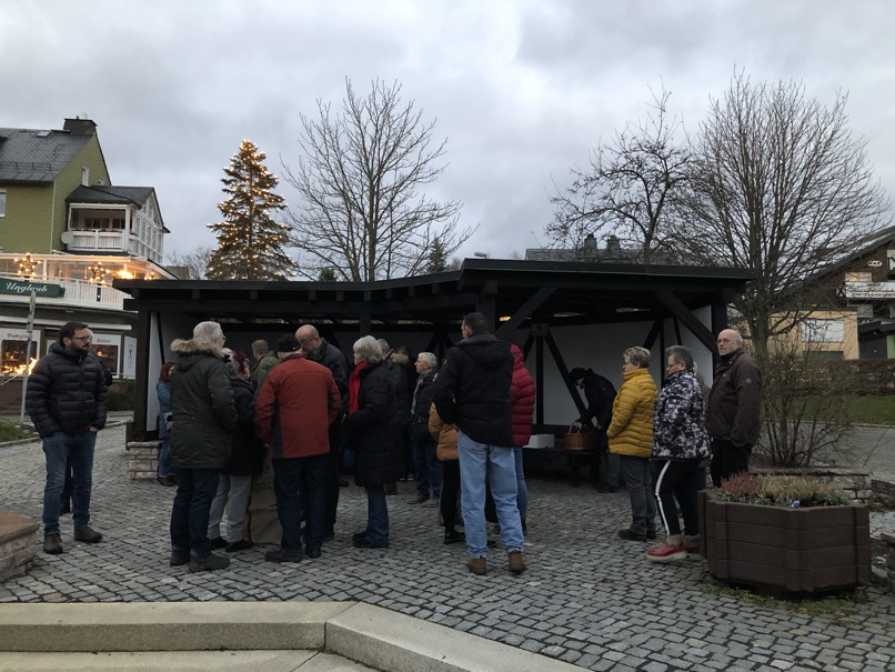 Und wieder ist ein Jahr zu Ende und zum Abschluss trafen wir uns zu einer Feier in der Adelskammer in Carlsgrün. Wie die Jahre zuvor fuhr ein Teil unserer Mitglieder mit dem Zug nach Bad Steben. Dort gab es am Bahnhof Glühwein und Plätzchen, anschließend ging es per Fackelwanderung nach Carlsgrün. Wer nicht mit dem Zug kam, fuhr mit dem Auto, es bildeten sich zahlreiche Fahrgemeinschaften.