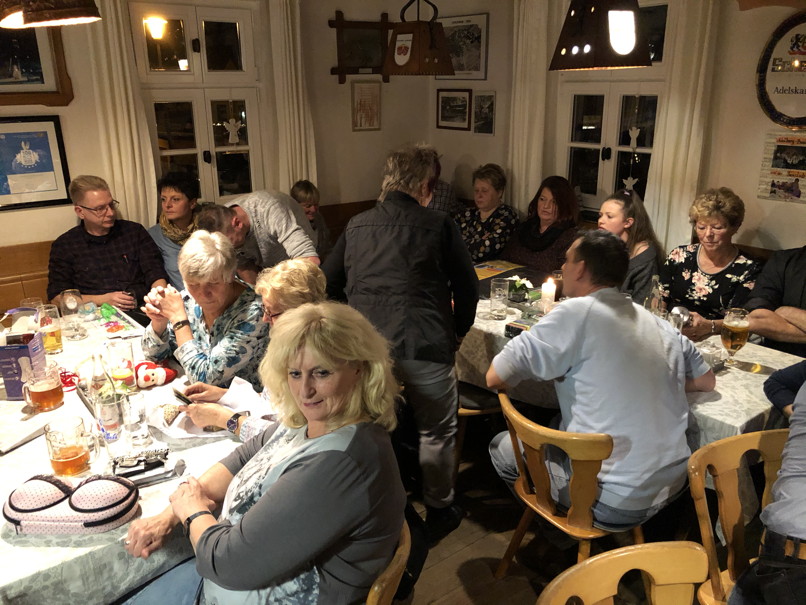 Nach einem lustigen Abend löste sich die Gesellschaft nach dem Wichteln langsam auf, die Zugfahrer mussten natürlich erst nach Bad Steben zurück laufen, dort ging es wieder mit dem Zug nach Hof.